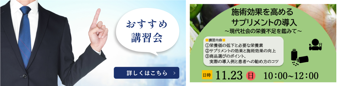 - 【学術講習会】施術効果を高めるサプリメントの導入