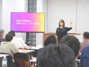 先ずは、集患に成功している実例や効果をご紹介いただき、Instagram運用開始の第一歩として、実機操作を通じて学んでいただきました。具体的には、初期設定として、機能を充実させるための個人アカウントからプロアカウントへの切り替え方法。次に、患者様に安心感と信頼感を与え、来院意欲を高めるプロフィールの設定方法。そして、ターゲットとなる患者様に投稿を届けるための効果的なハッシュタグの選定方法、さらに日々の情報発信に欠かせない投稿やストーリーズの基本的な活用法まで、実践的な講習会でした。